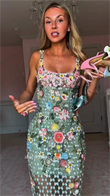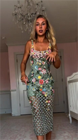 This midi dress features a square neckline and delicate spaghetti straps. The mesh is embroidered with vibrant florals, creating a beautiful, feminine silhouette. The sheer mesh complements the vibrant florals, lending the dress an elegant and romantic feel.