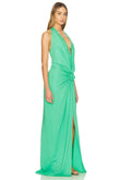 Green Halter - Neck Maxi Dress with Knot Detail