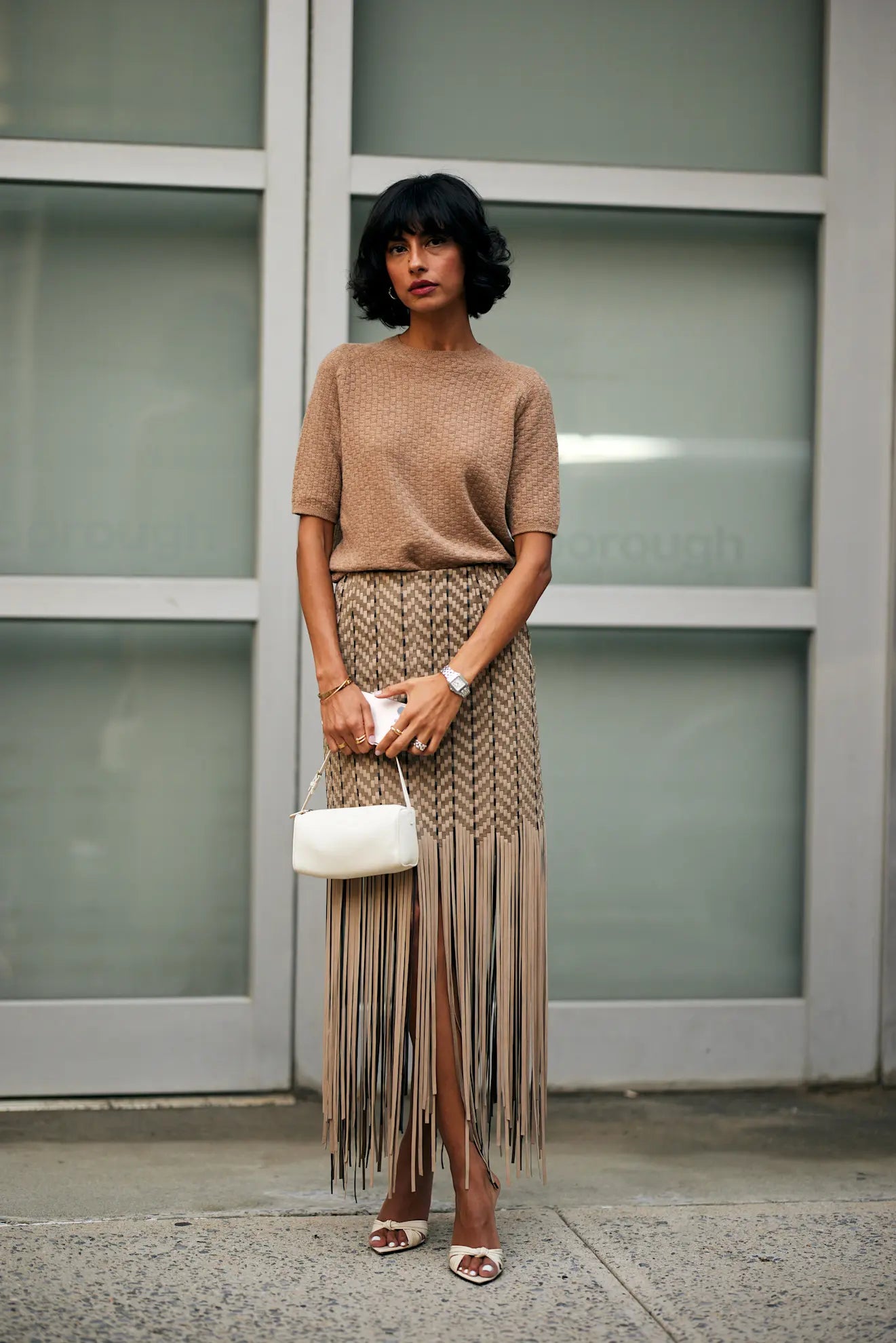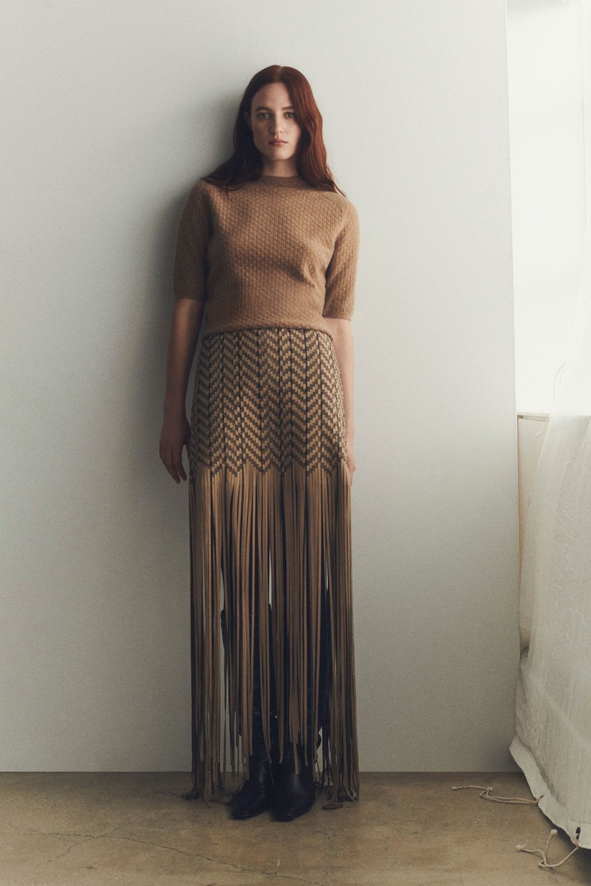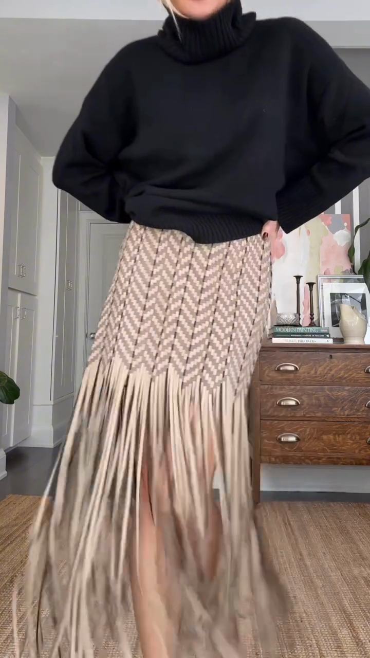 Hand woven suede skirt