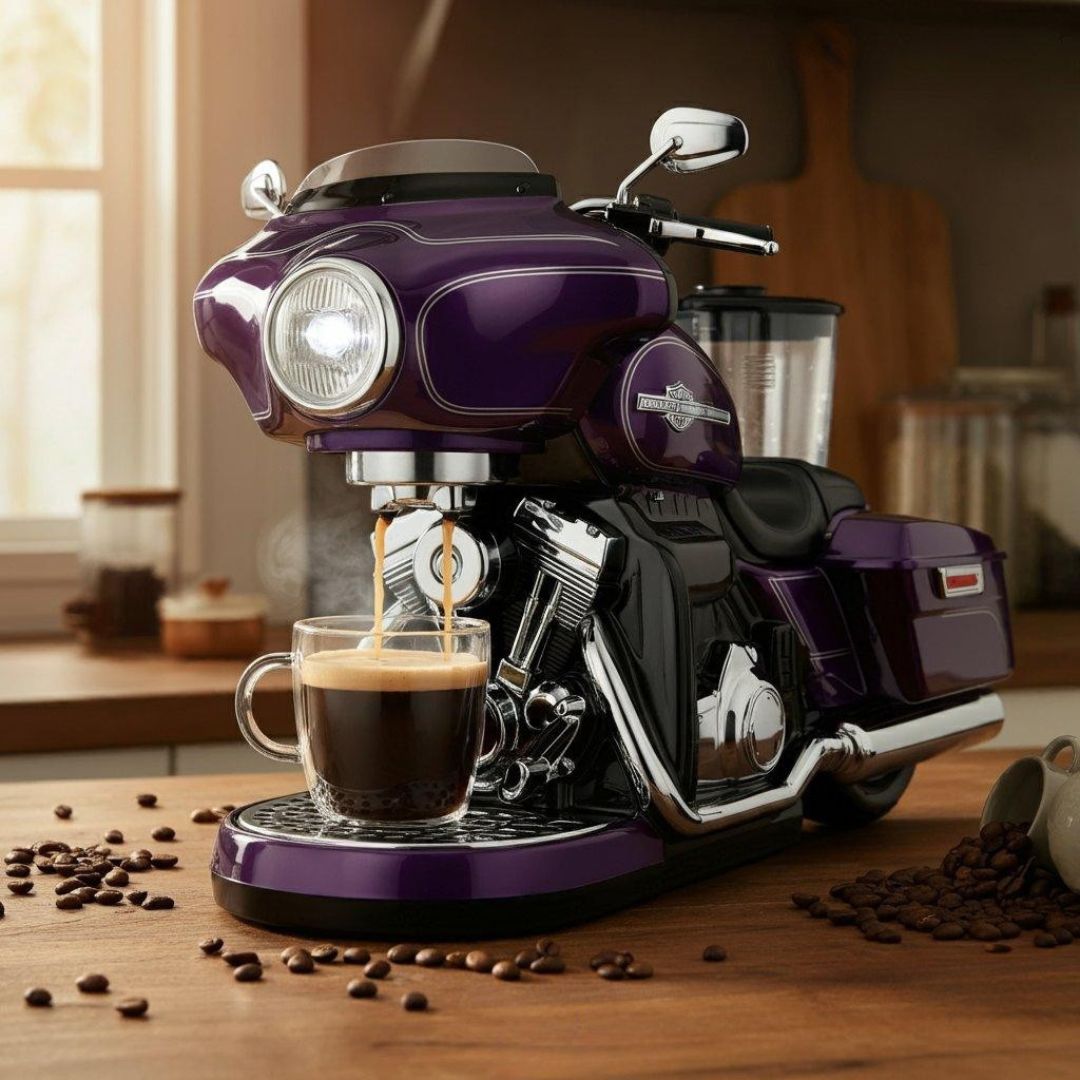 Kickstart your day with the rugged spirit of the open road. The Harley-Inspired Motorcycle Coffee Maker blends industrial metal styling with high-performance brewing for riders and coffee lovers alike.