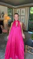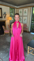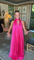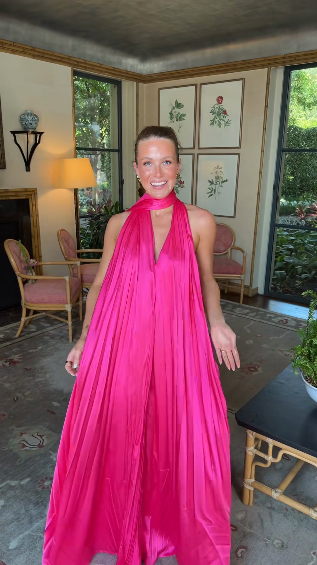 Hot Pink Halter - Neck Pleated Maxi Dress