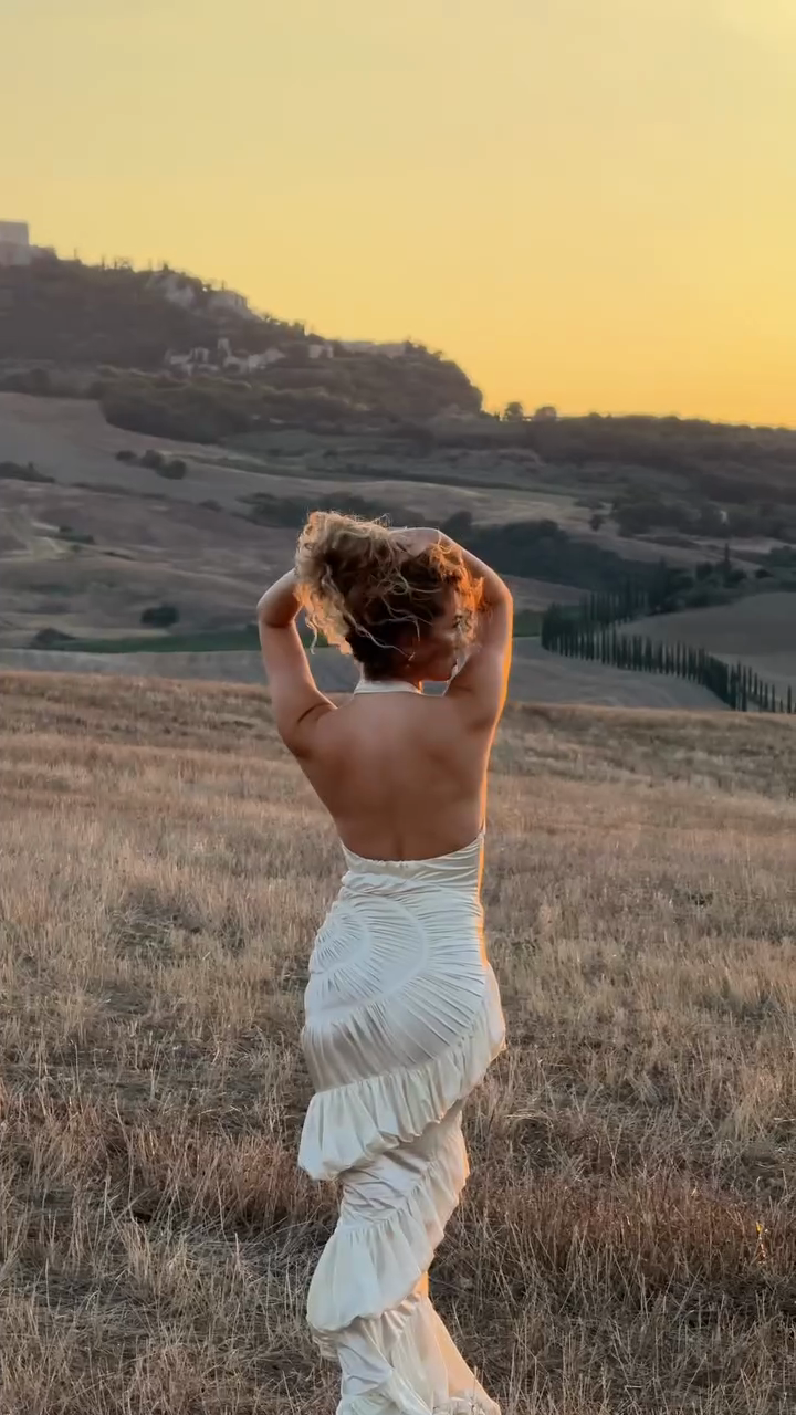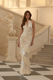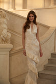 Ivory Halter Neck Ruffled Gown