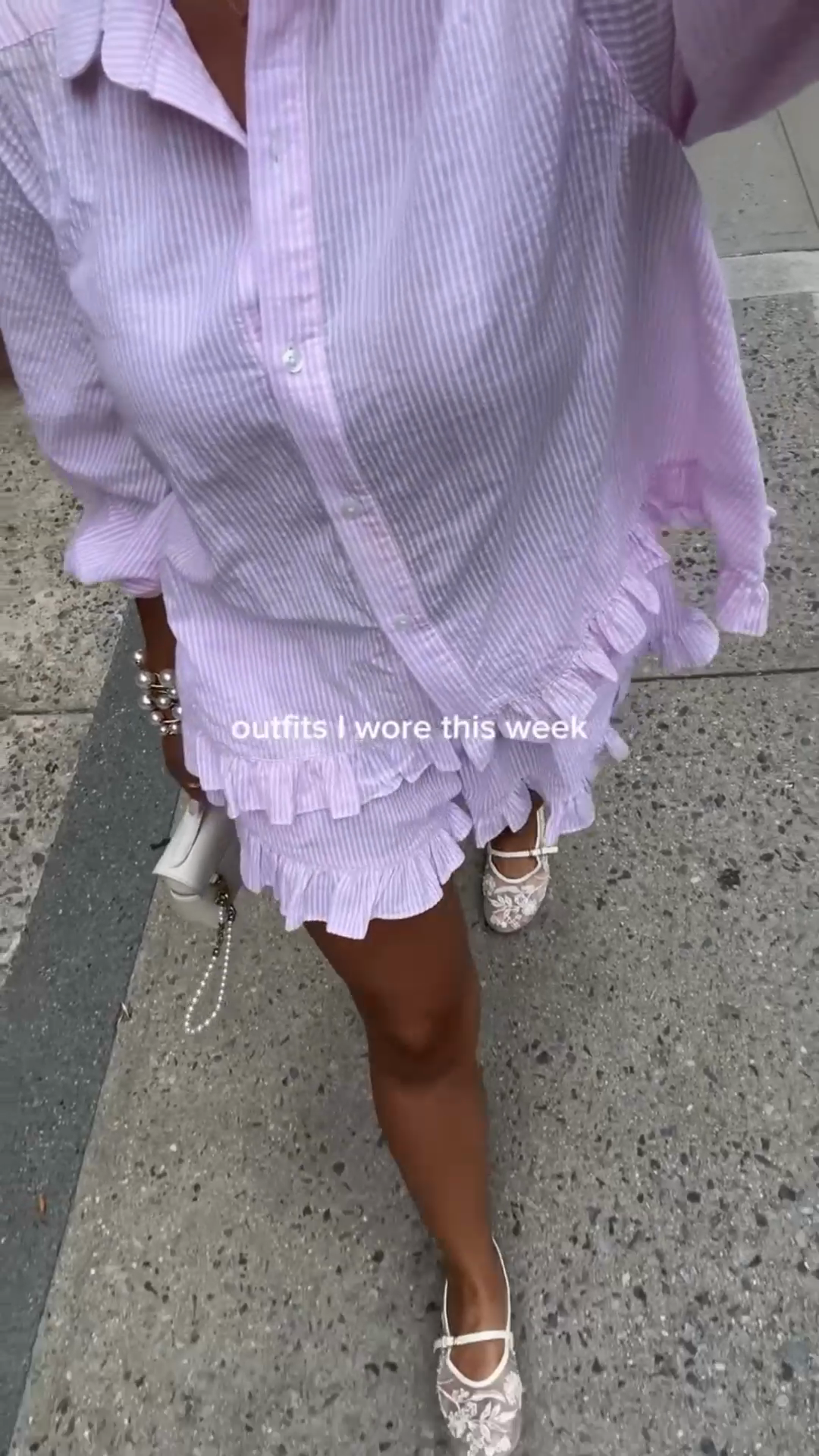 Embrace sweet summer style with this Lavender Striped Ruffle Shirt & Shorts Set. The relaxed shirt and frilly shorts create a playful, coordinated look. Perfect for casual outings or beach days.