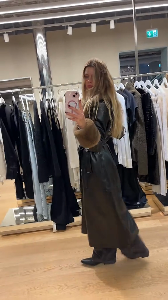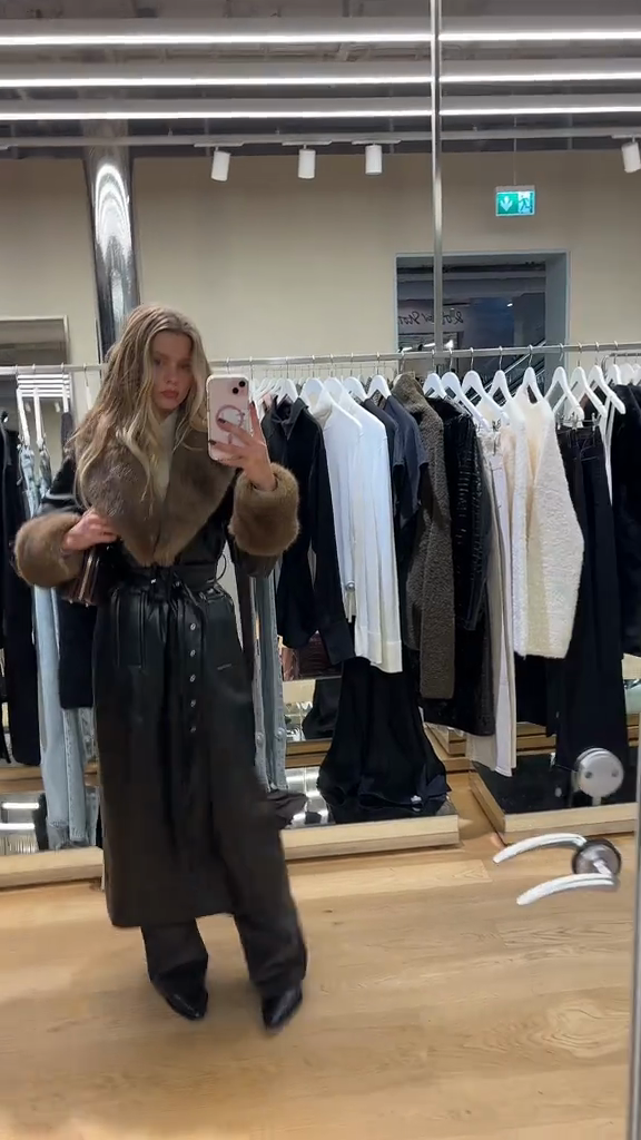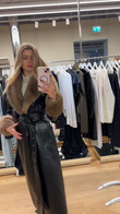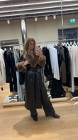 This coat exudes sophistication with its smooth leather exterior. Faux fur trim at the collar and cuffs adds a touch of luxury and warmth. The belted design creates a flattering silhouette and enhances the overall elegance.