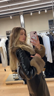 This coat is comfortable to wear, and the leather material lends it a layered and versatile feel. The faux fur trim adds a touch of dimension and comfort, making it an ideal piece for cooler weather.