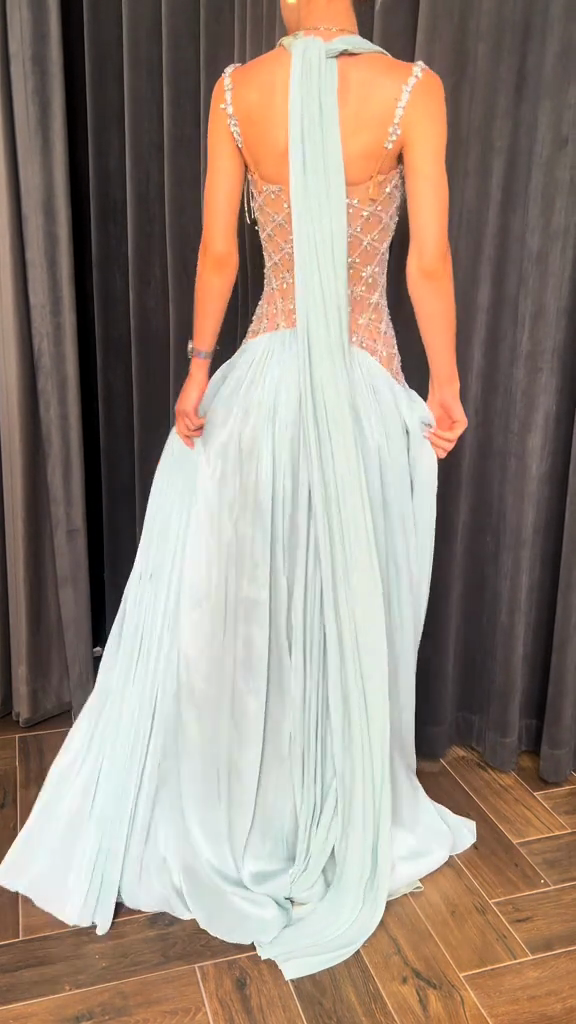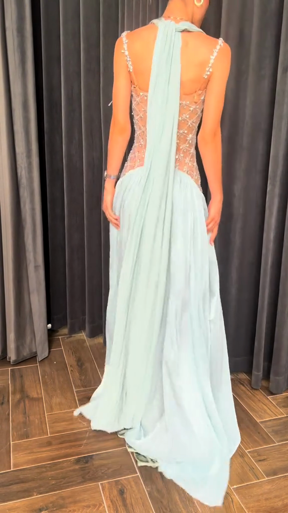 Light blue beaded evening gown