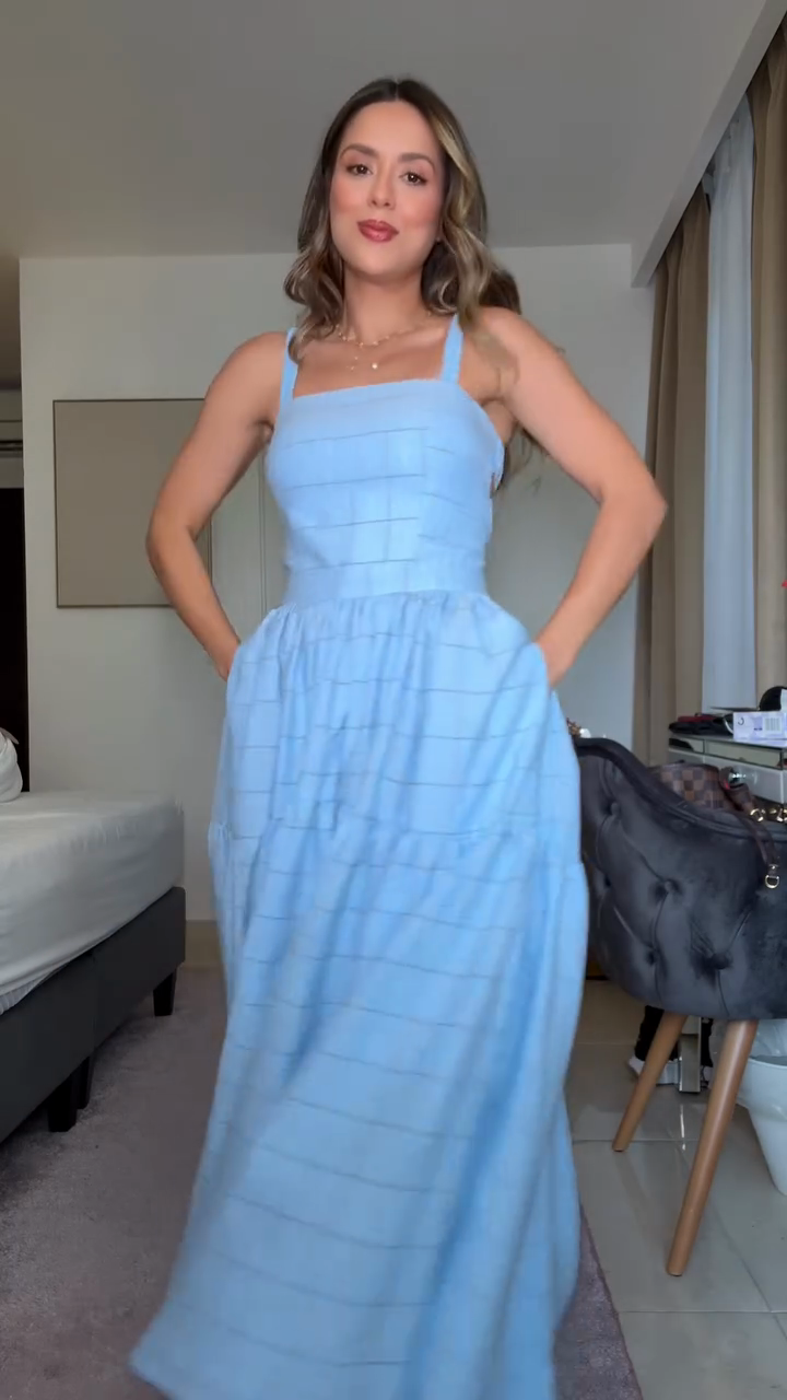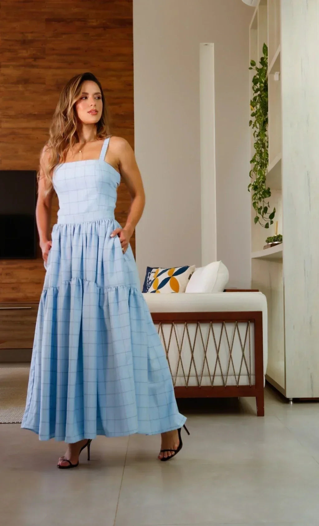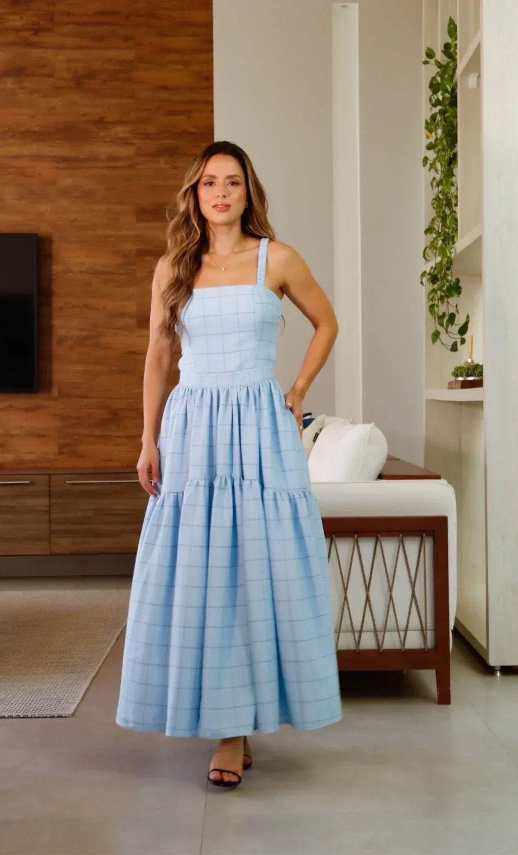 Light Blue Gingham Maxi Dress
