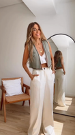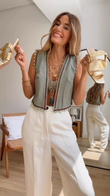 Light Green Embroidered Sleeveless Denim Vest