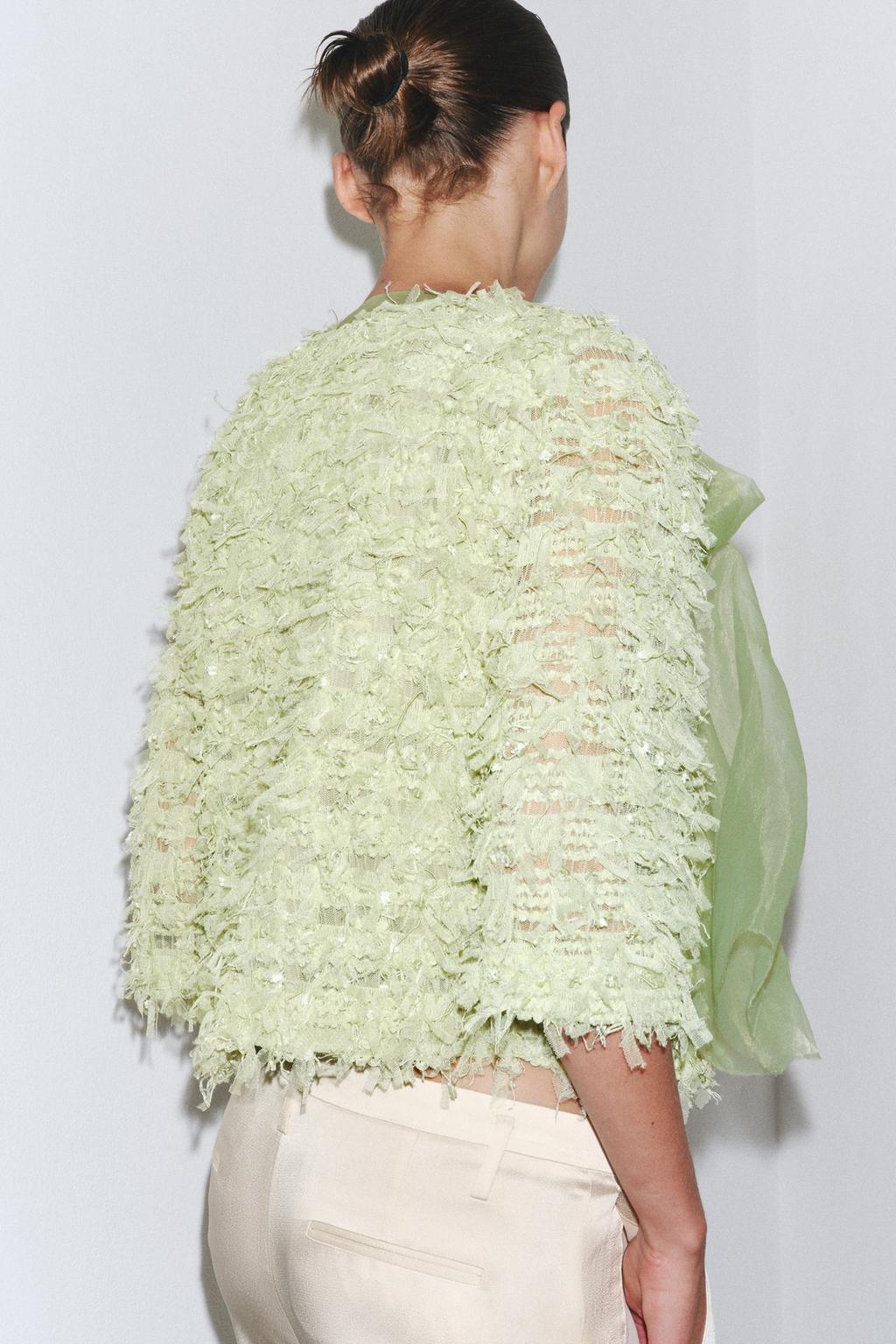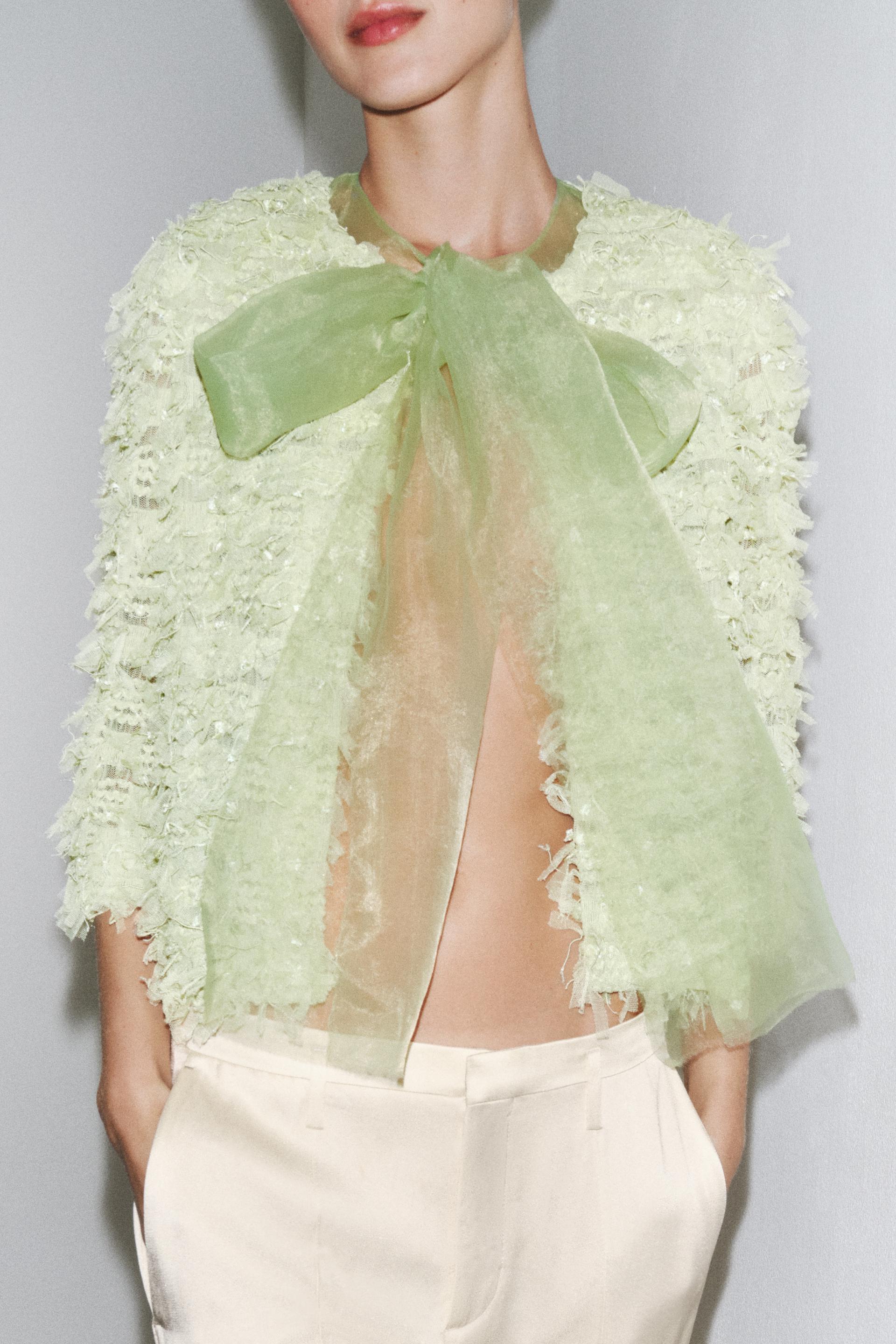 Light Green Fringe - Trimmed Tie - Front Jacket