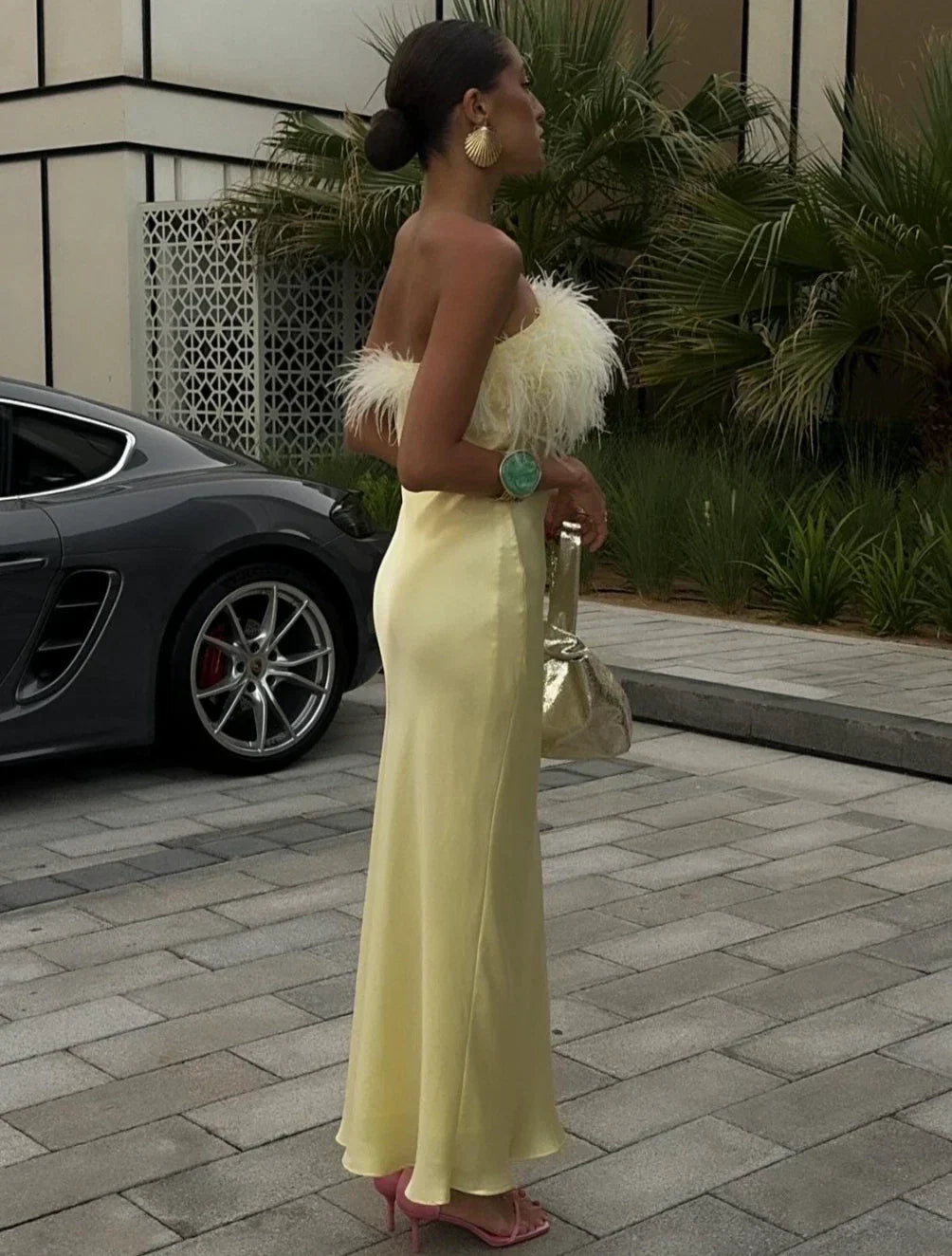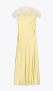 Light Yellow Strapless Feather - Trimmed Dress