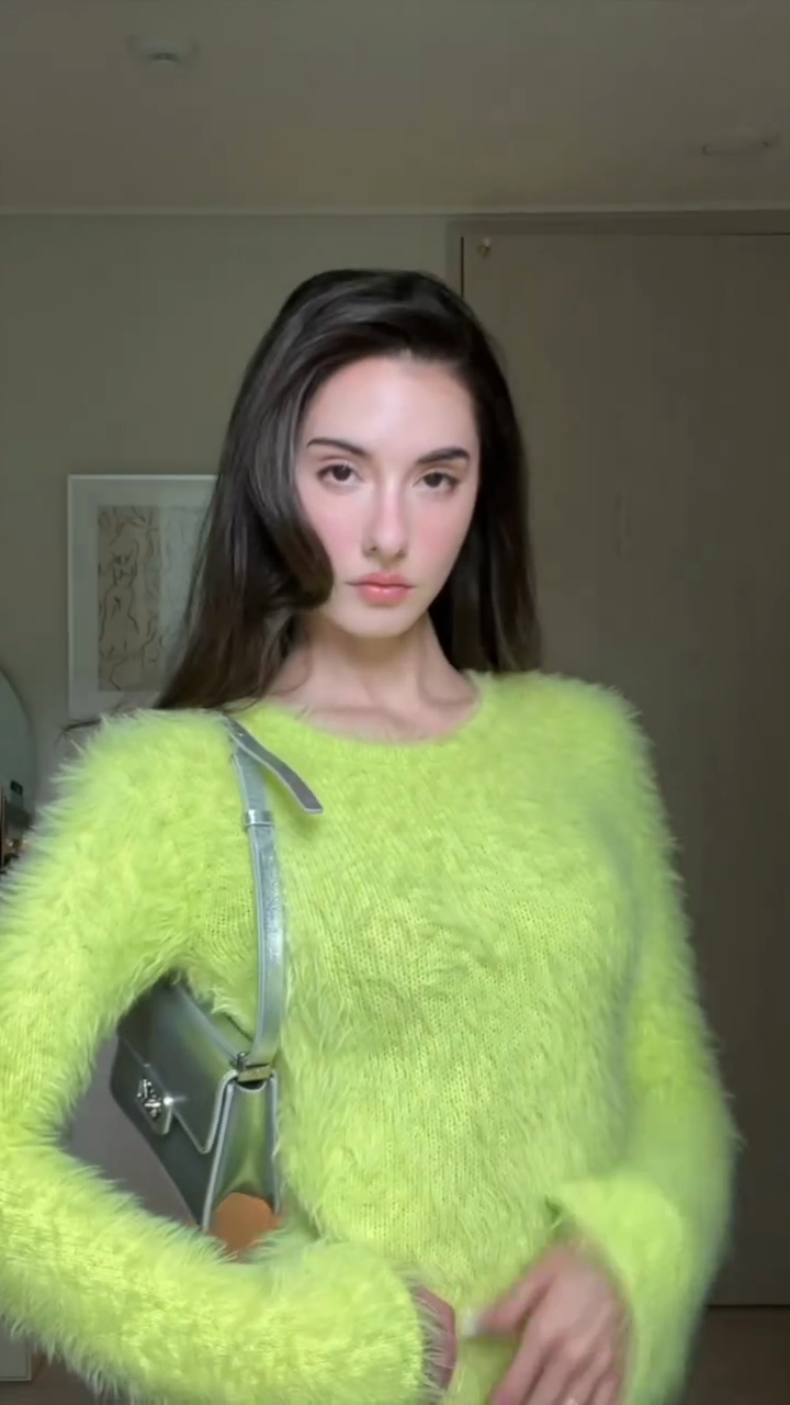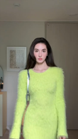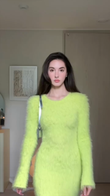 Crafted from soft lime green knit, this dress features a round neckline, flared sleeves, and a slim fit in a midi length. Pair it with sleek ankle boots and a metallic shoulder bag for a comfortable and stylish daytime look.