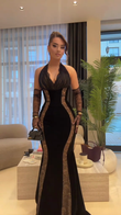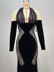Long Sleeve Lace Maxi Velvet Dress