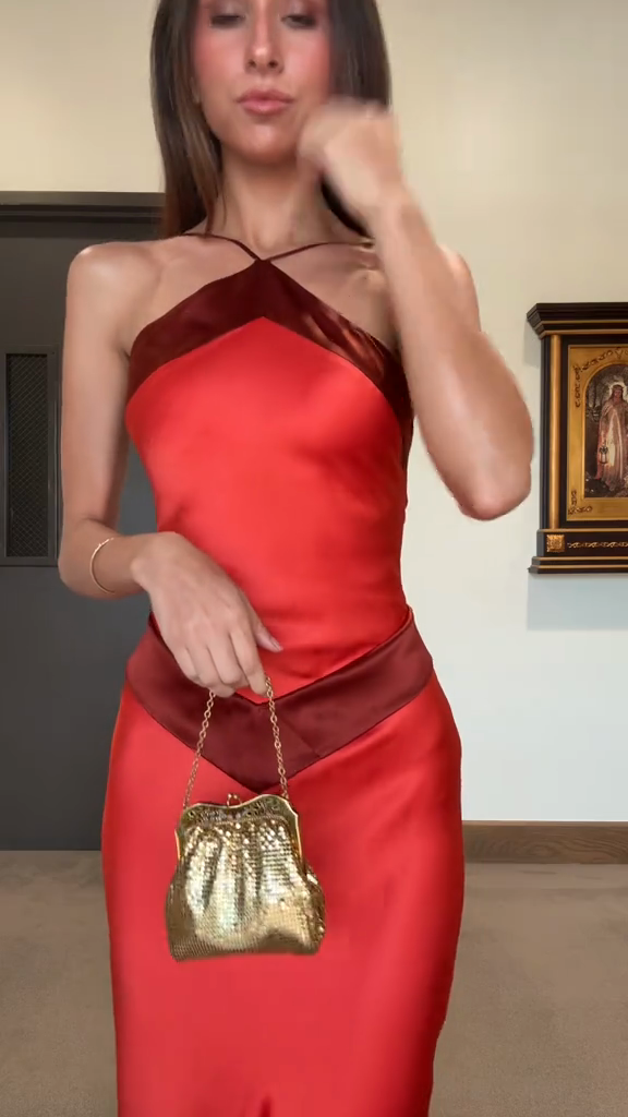 Mesh Accents Halter Maxi Dress