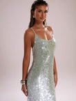 Mint Green Sequin Spaghetti Strap Maxi Dress