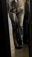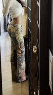 These jeans feature vibrant prints and a variety of patterns for a bold, eye-catching look. The flared legs add a vintage touch, making them a must-have in any wardrobe.