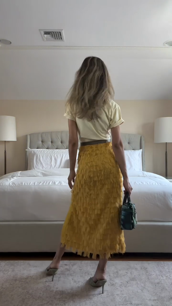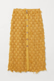 Mustard Yellow Fringe - Detailed Button - Front Skirt