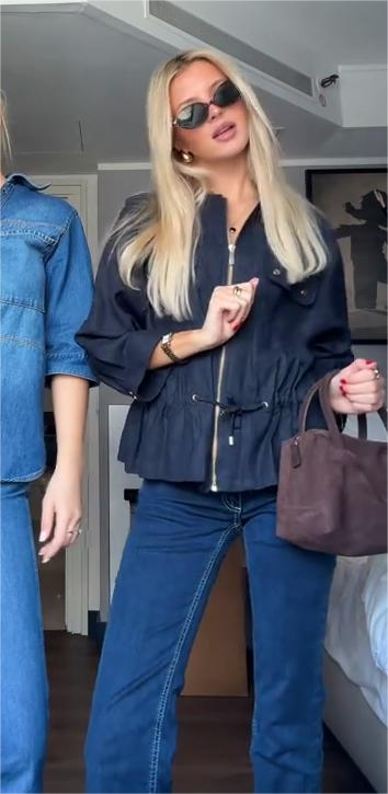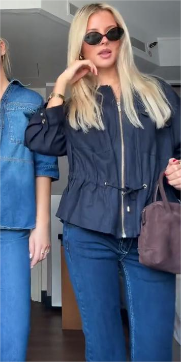 Navy Blue Cinched - Waist Jacket