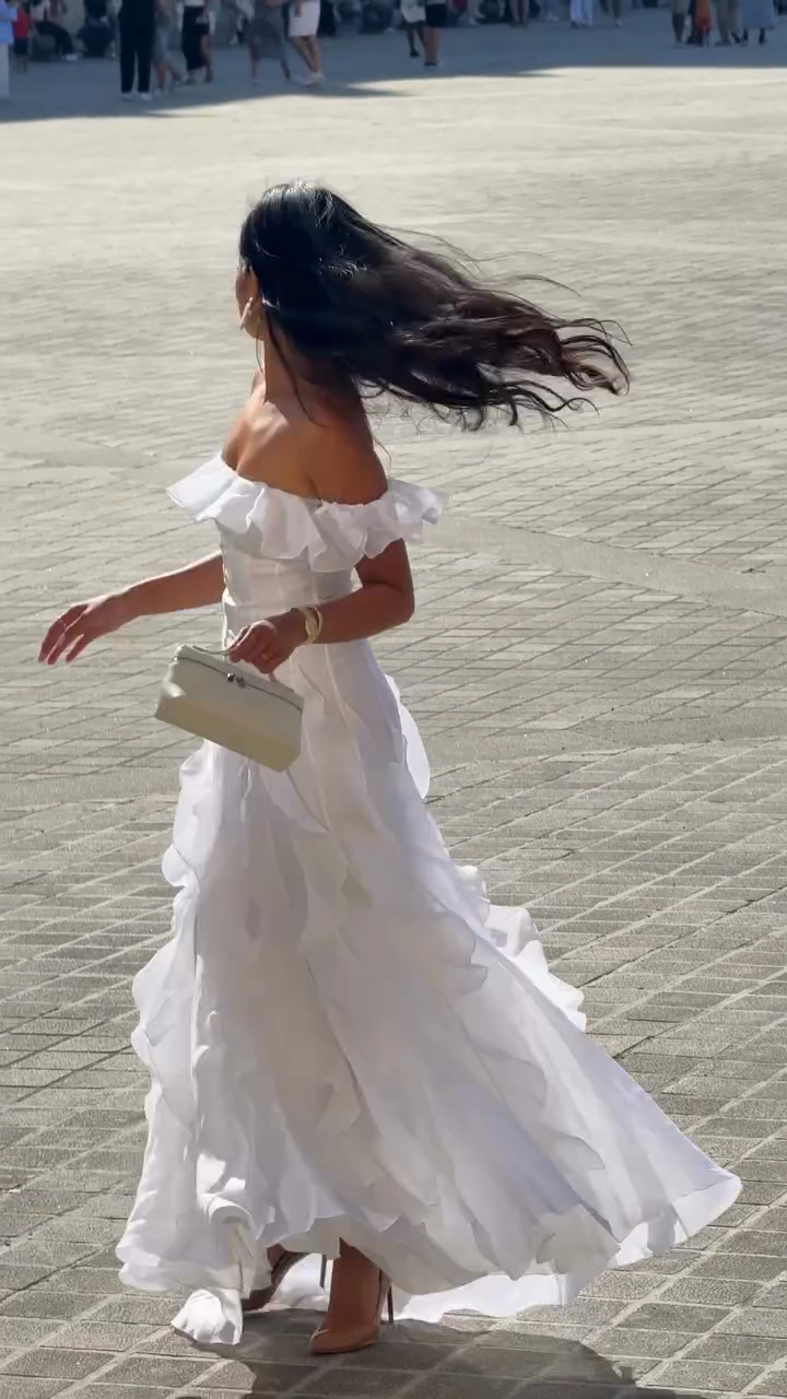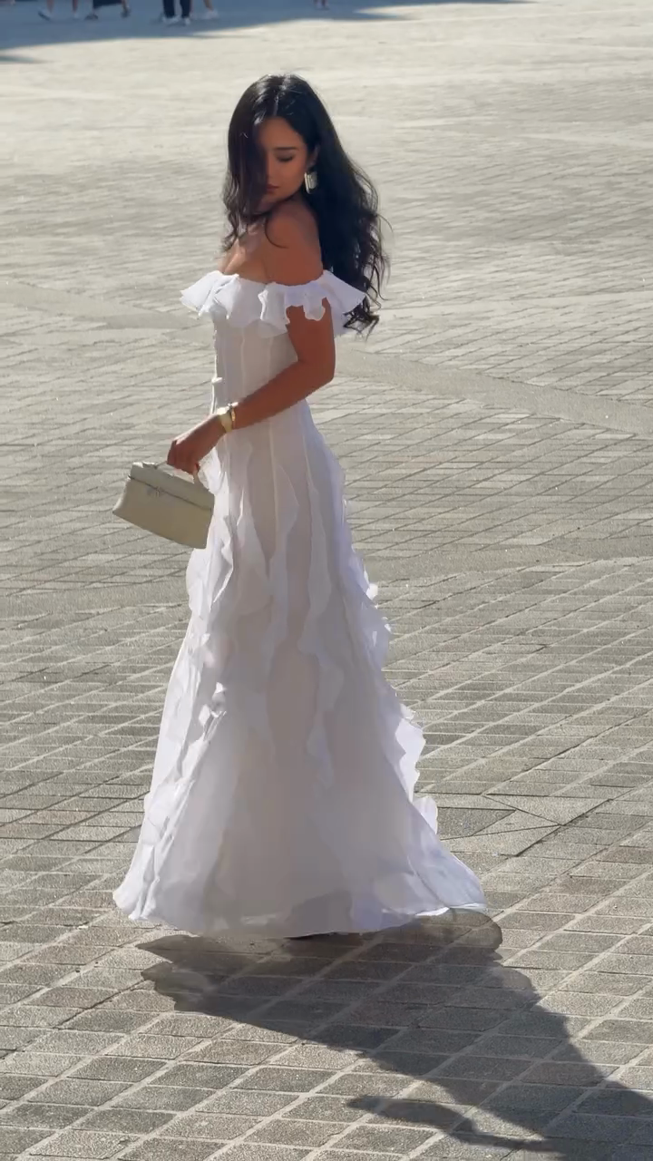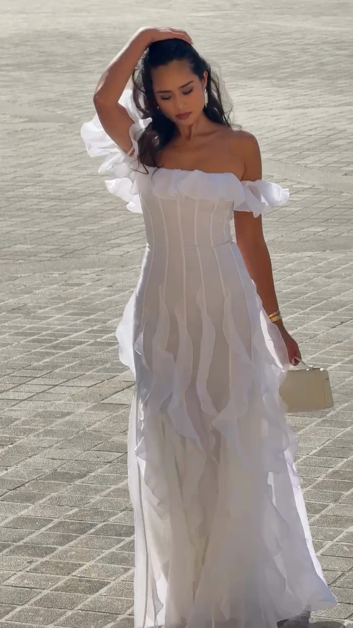 Off - Shoulder Ruffled White Maxi Dress
