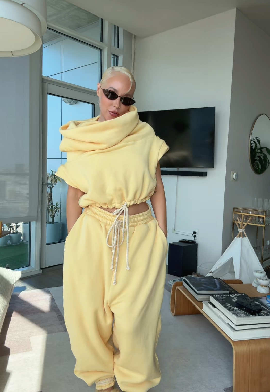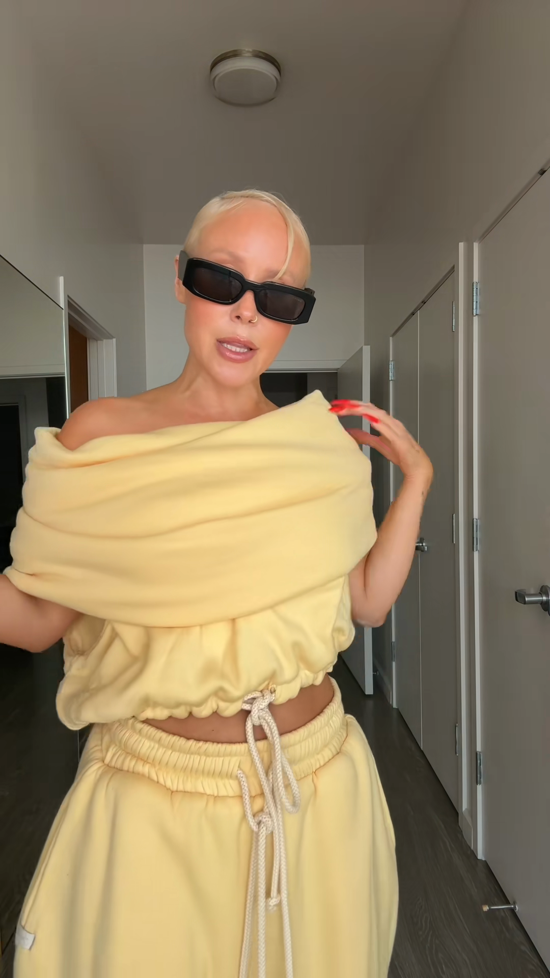Off the Shoulder Cropped Top and Drawstring Joggers Set