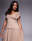 Off-the-shoulder pleated mocha midi dress