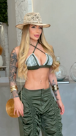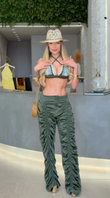 Olive Green Lace - Trimmed Bralette and Ruched Pants Set