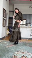Olive Green Satin Crop Top and Maxi Skirt Set