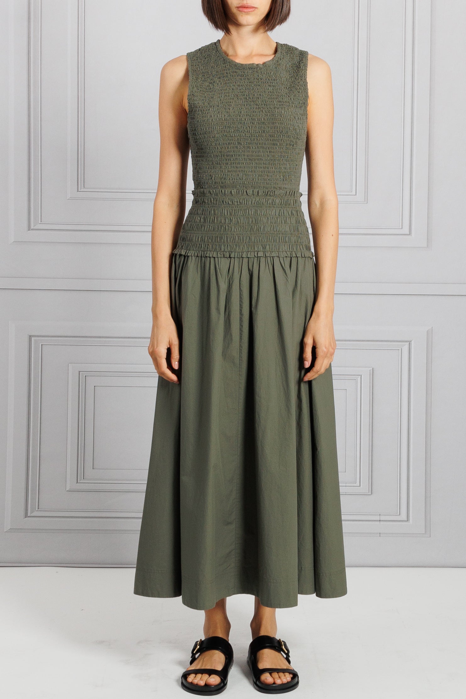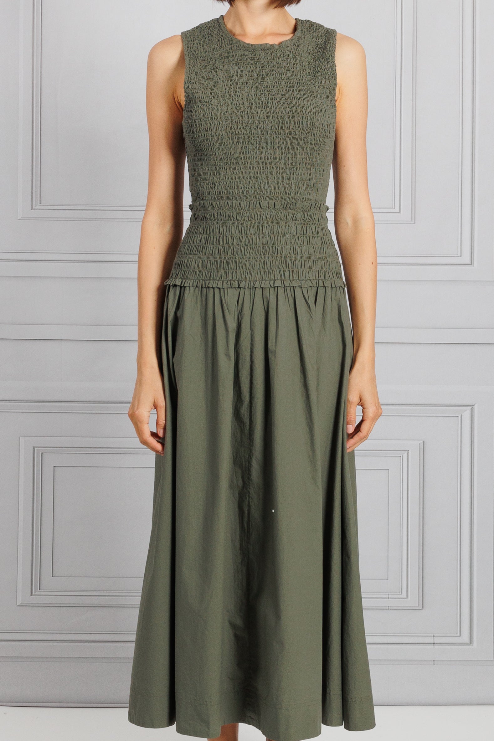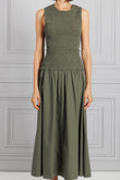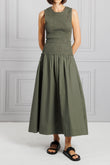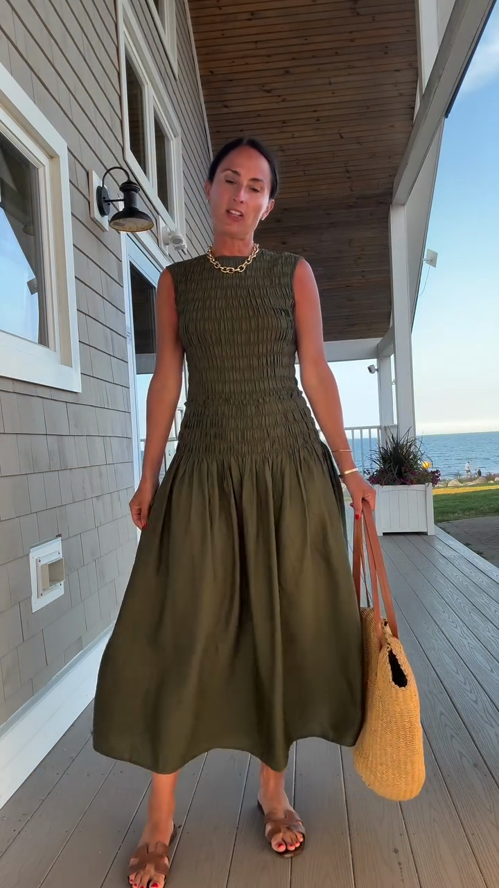 Olive Green Smocked Maxi Dress