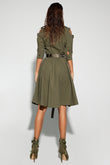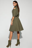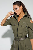 Olive Green Utility - Style Dress with Cut - Out Shoulders