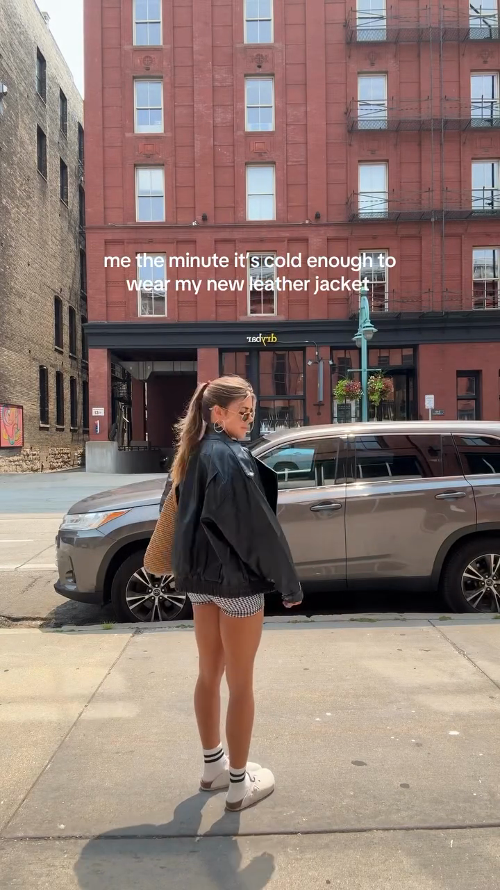 Oversized Black Leather Biker Jacket