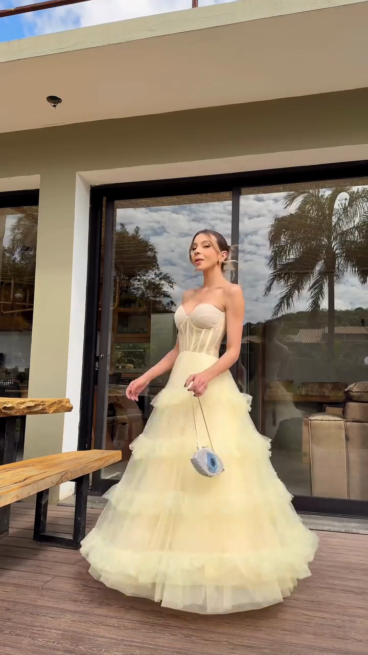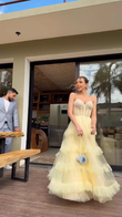 Pale Yellow Strapless Ball Gown