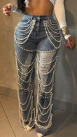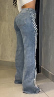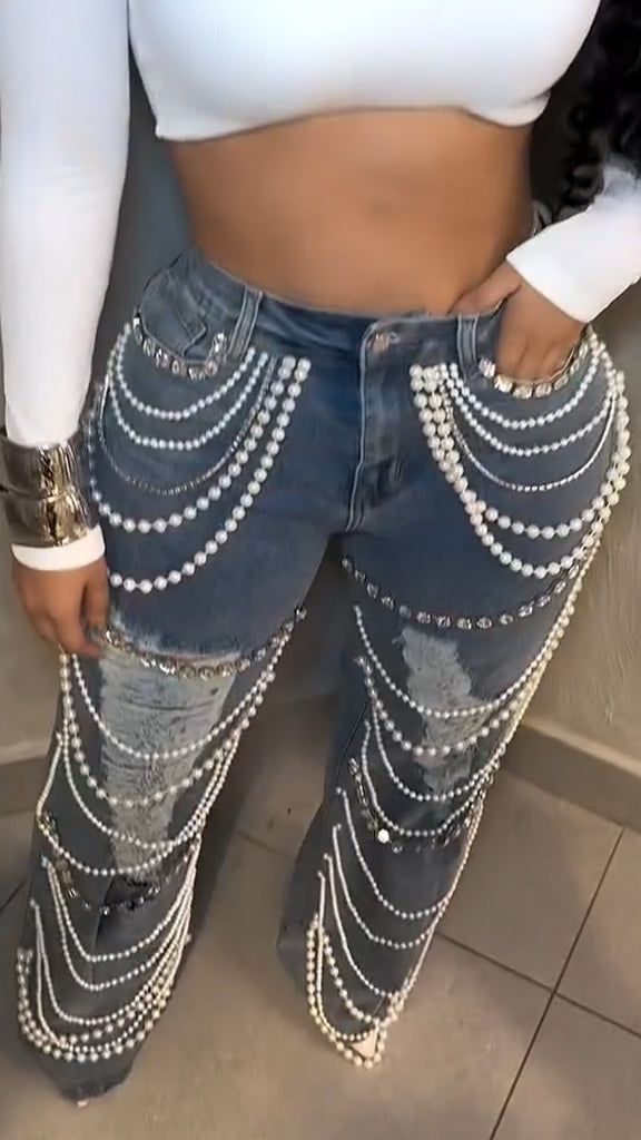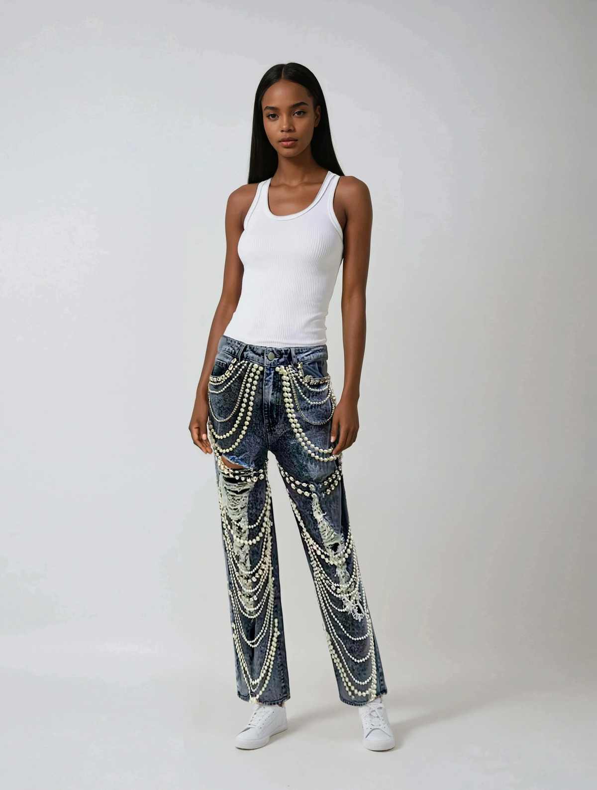 Pearl - Embellished Distressed Wide - Leg Jeans