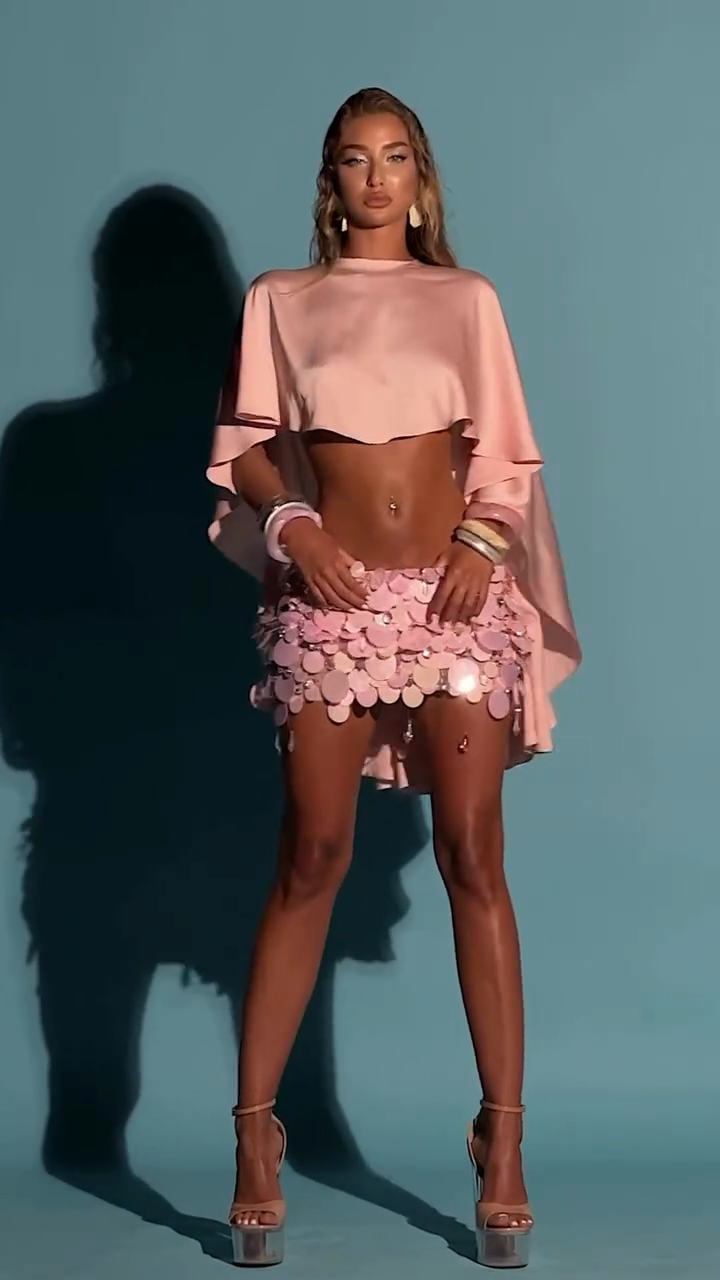 Pink Cape - Style Crop Top and Sequin Skirt Set