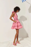 Pink Embroidered Mini Dress