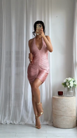 Pink Halter Neck Bodycon Mini Dress