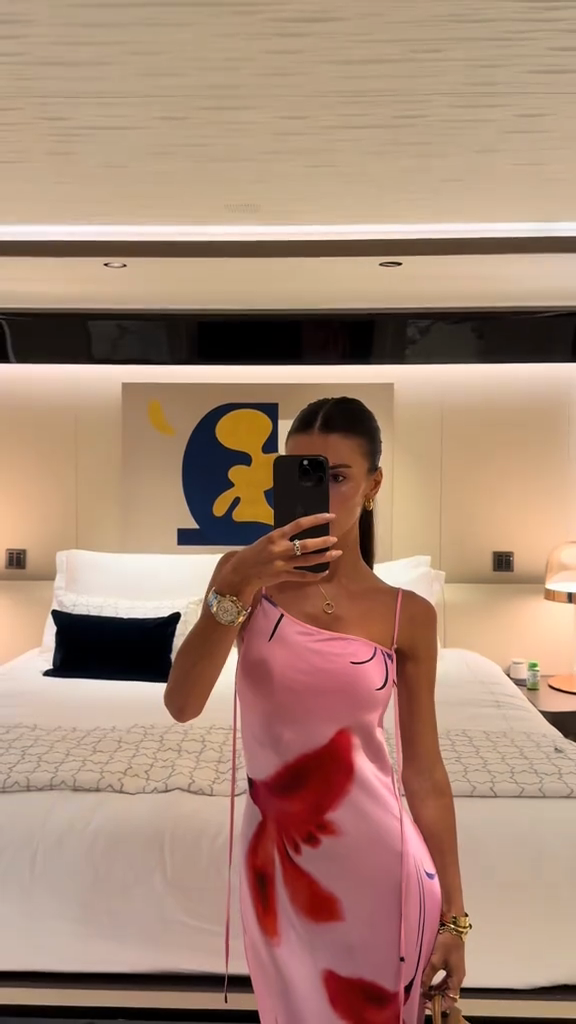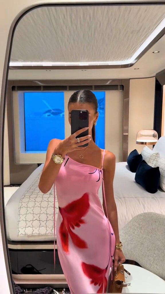 This pink maxi dress features a sleek one-shoulder neckline, adding a touch of sophistication. The soft pink satin fabric is embellished with a vibrant red floral print, creating a striking yet feminine silhouette. The fitted silhouette hugs the body, accentuating curves, while the long skirt elongates the figure with an elegant, slender silhouette. It's perfect for special occasions, garden parties, or upscale dinners. Crafted from smooth satin, this dress offers a luxurious feel and a superb drape. The perfect combination of fabric and floral print makes it a statement piece in any wardrobe.