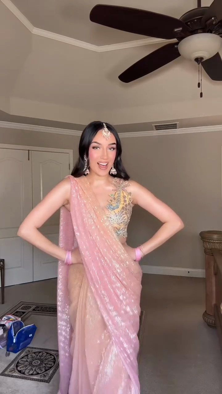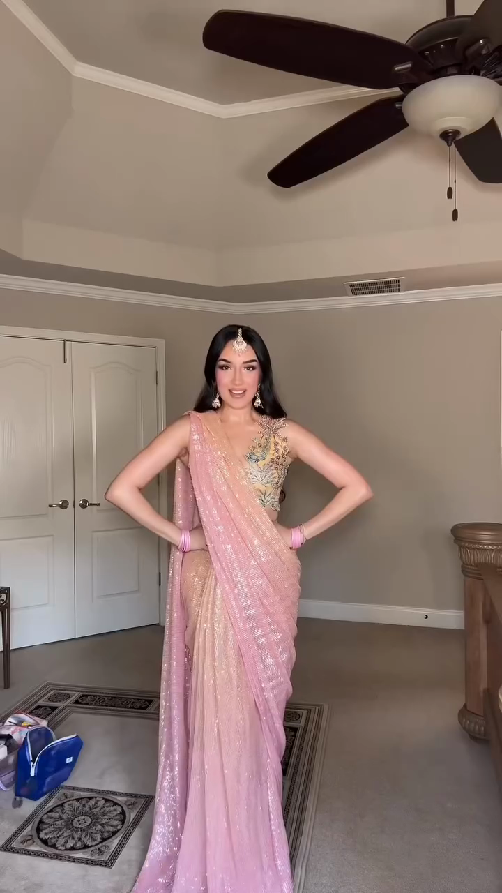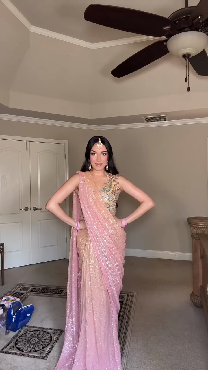 Pink sequin embroidered saree