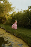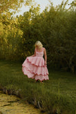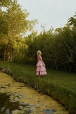 It's perfect for outdoor events, garden parties, or casual outings. The soft pink colorway and flowing silhouette easily pair with sandals or espadrilles for a relaxed, summery vibe.