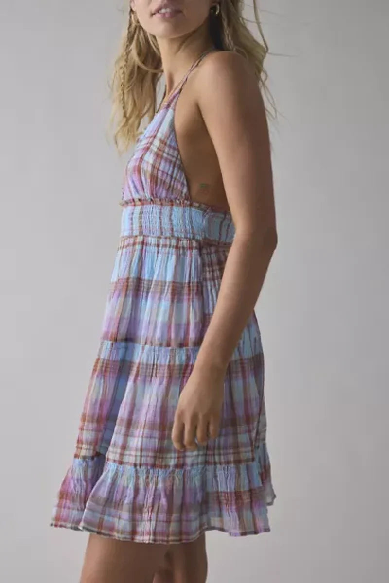 Plaid Halter Mini Dress