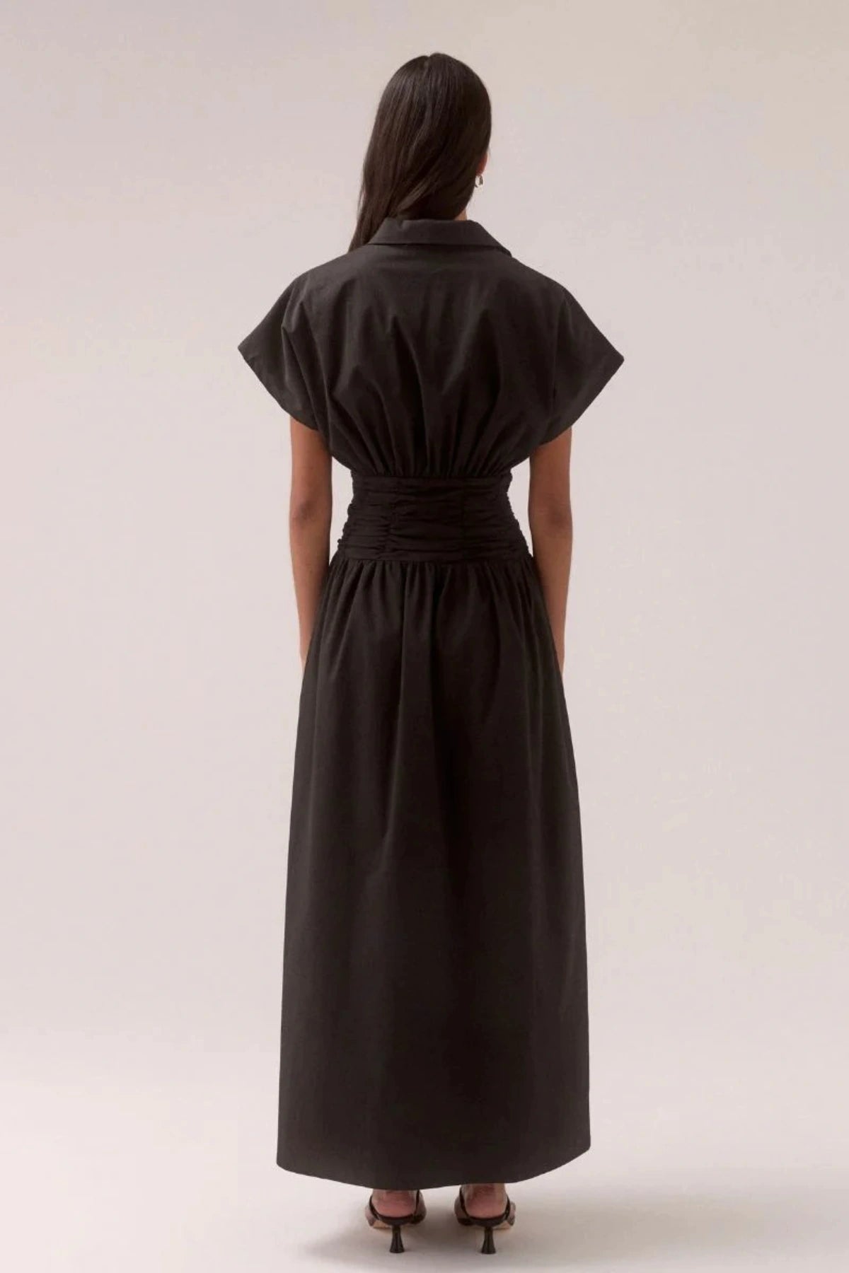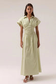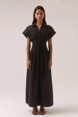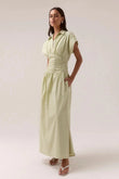 Pleated waist maxi shirt dress