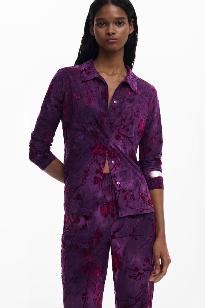 Purple floral velvet suit