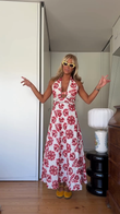 Red and White Floral Halter Maxi Dress