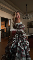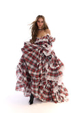 Red and White Plaid Off-the-Shoulder Prom Dress