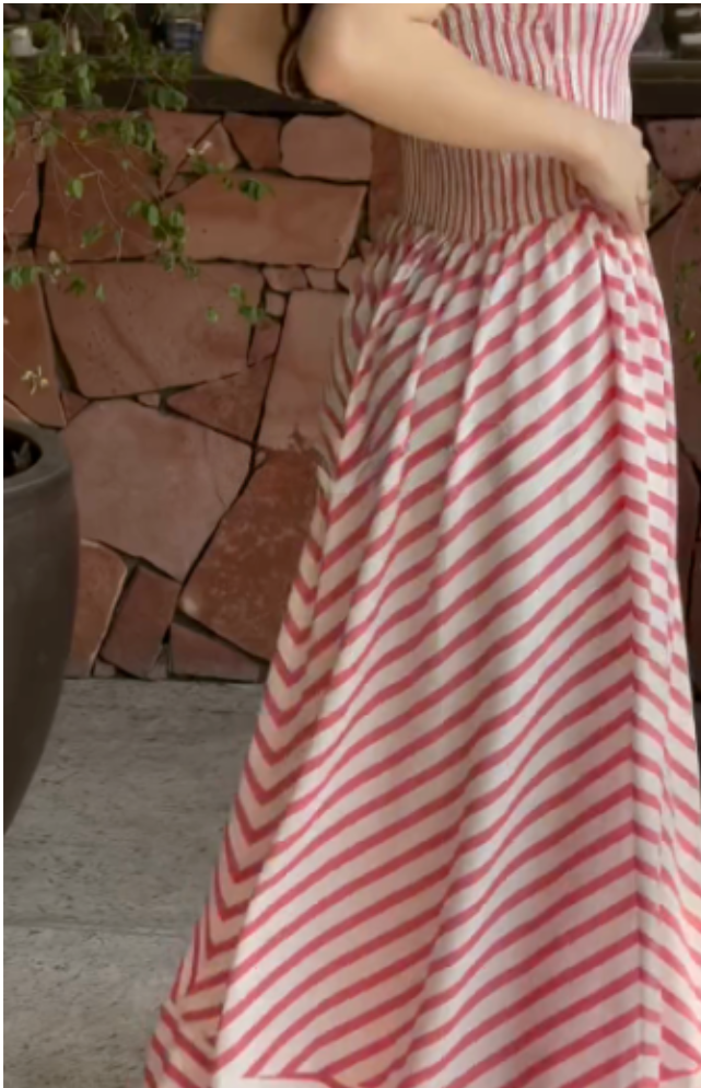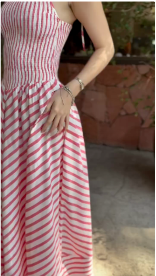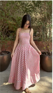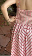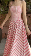 Red and White Striped Smocked Maxi Dress
