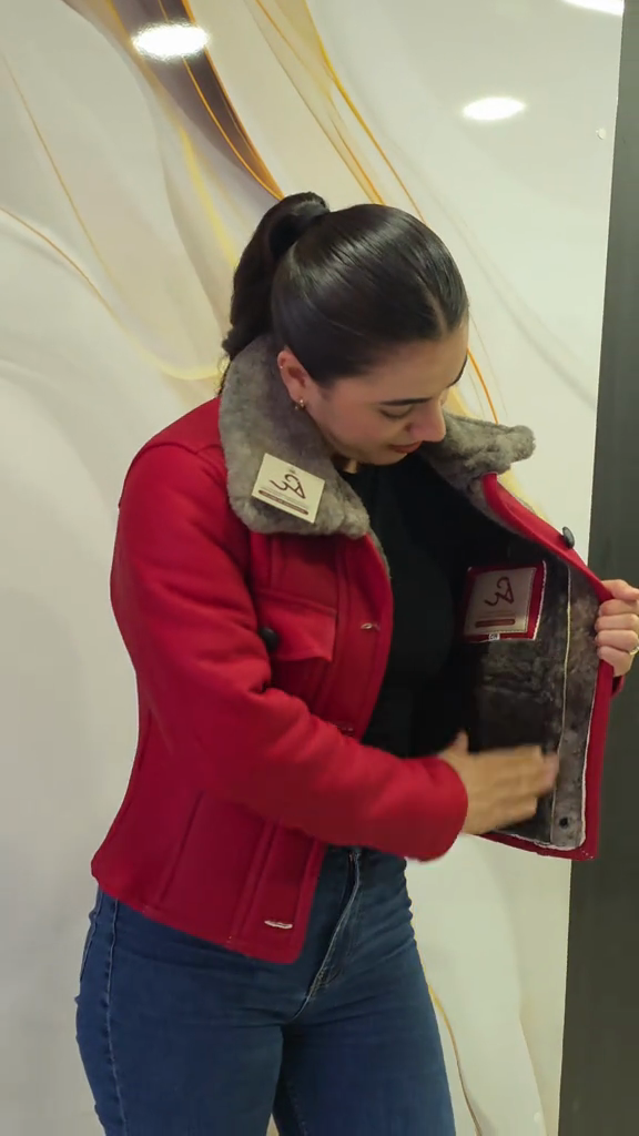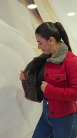 Red Cropped Jacket with Faux Fur Collar and Lining