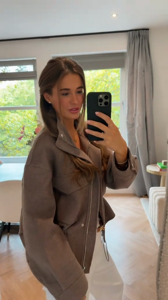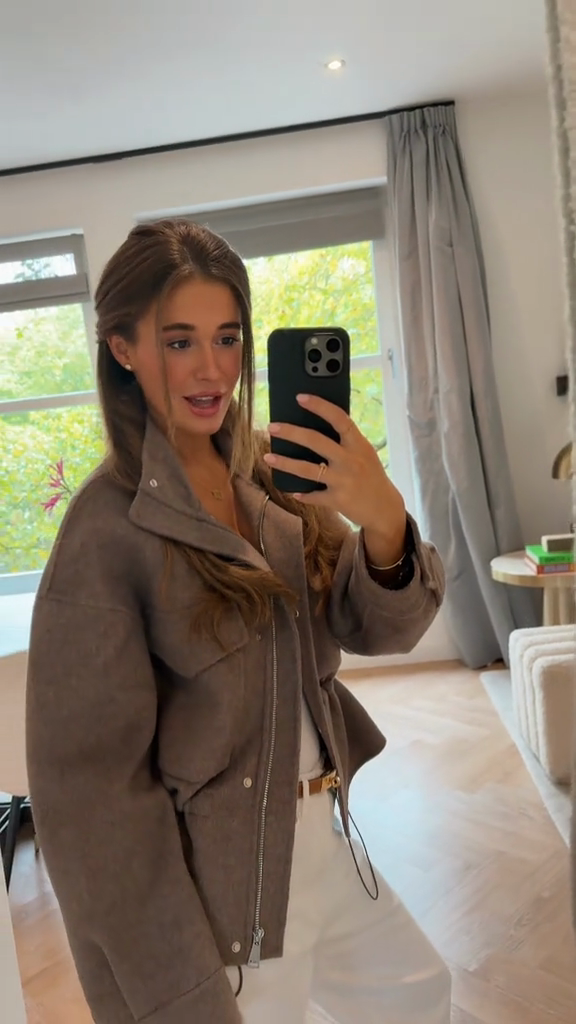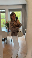 This taupe cropped work jacket features a high stand-up collar and front zip for a stylish, edgy look. The jacket features multiple pockets, combining practical functionality with a stylish, utilitarian look. The drawstring waistband allows for an adjustable fit, enhancing the slim silhouette. As shown, it pairs effortlessly with a simple white top and pants for a clean, modern look. It's perfect for transitioning between seasons and casual occasions like cafés, shopping, or weekend strolls. You can also style it with a dress or jeans for a different look. Made from durable fabric, it's comfortable and warm without sacrificing style. Accessorize with a delicate necklace and a stylish handbag to complete the look.