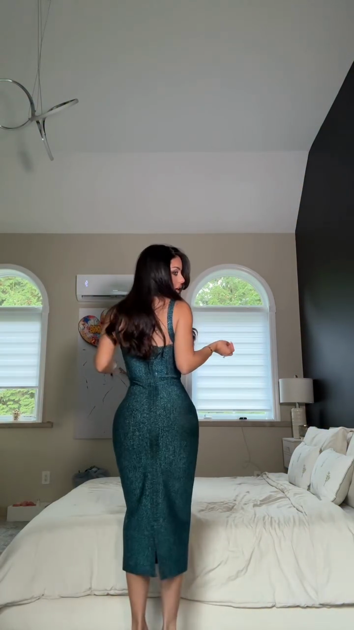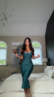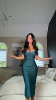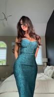 Teal Glitter Strapless Midi Dress