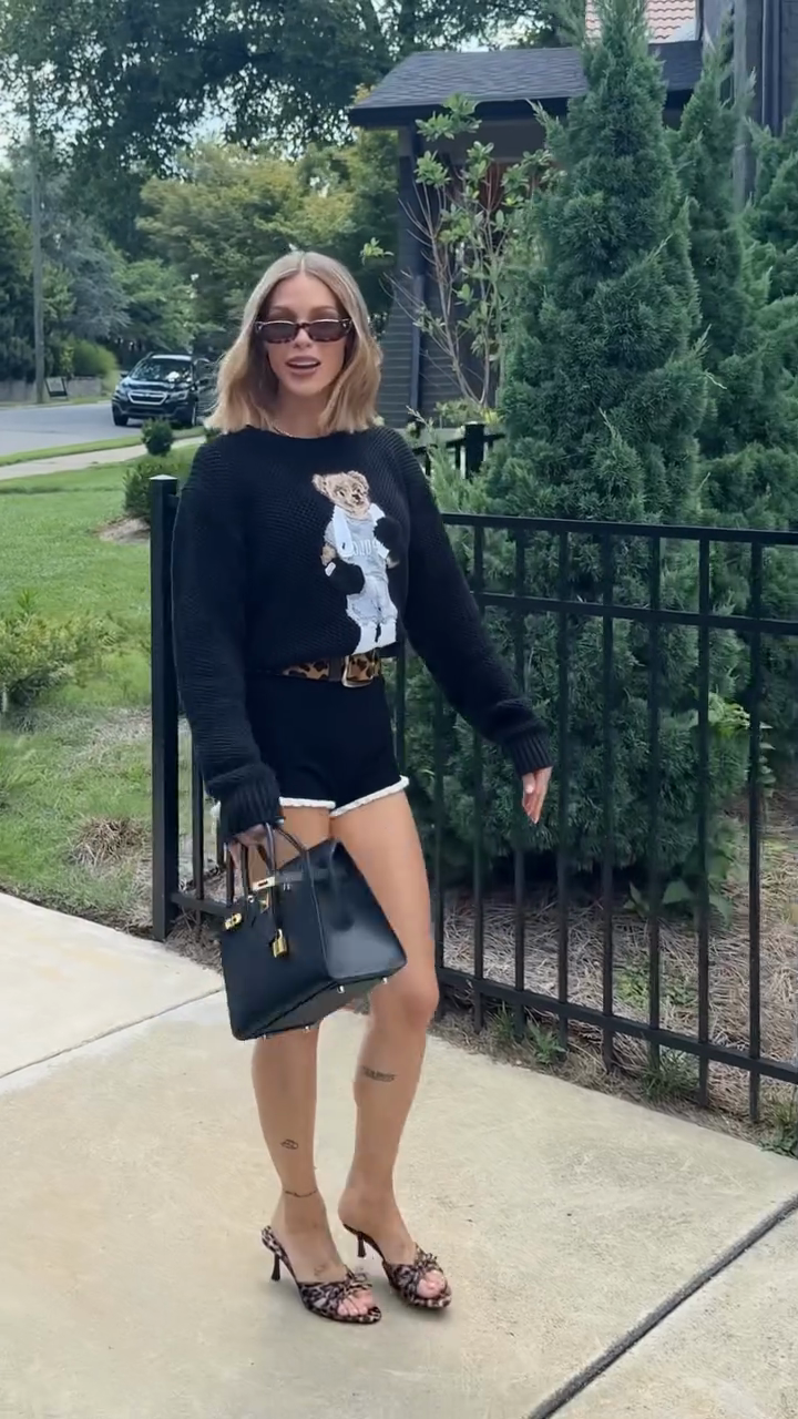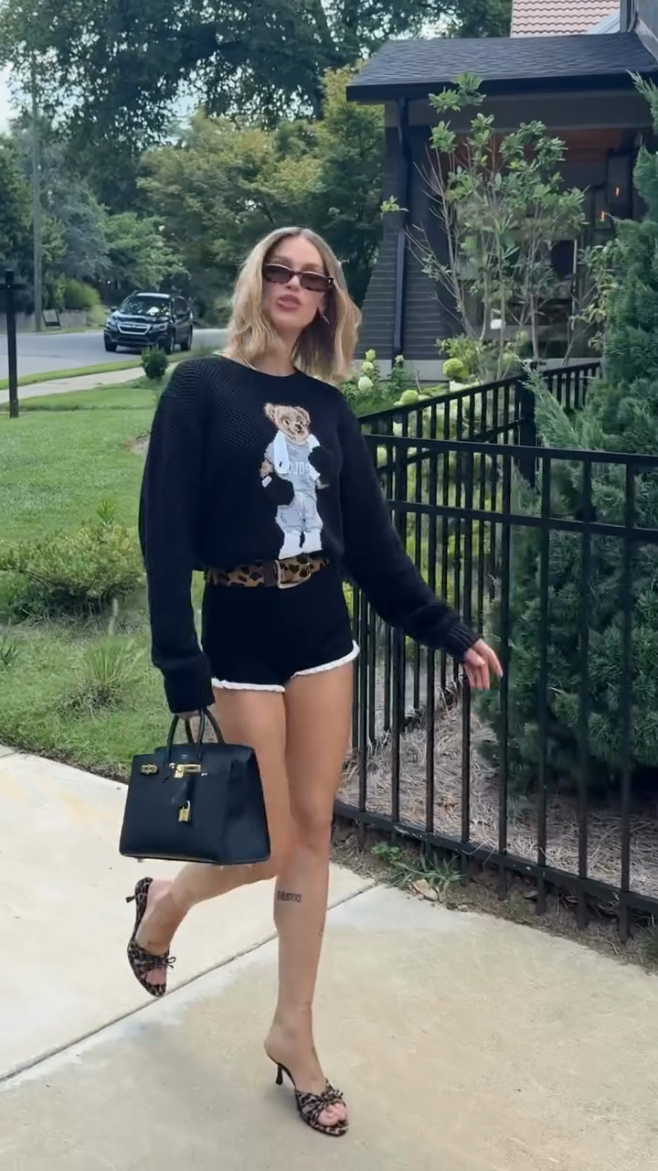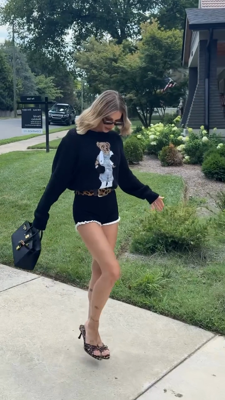 Teddy Bear Graphic Sweater & Shorts Set