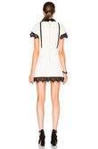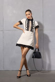 Elevate your elegance with this White Contrast Lace Short - Sleeve Mini Dress. The black lace accents on the collar, sleeves, and hem add a touch of sophistication. Perfect for cocktail parties or chic daytime outings.