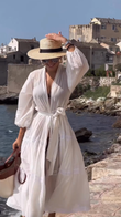White Embroidered Maxi Dress with Belt