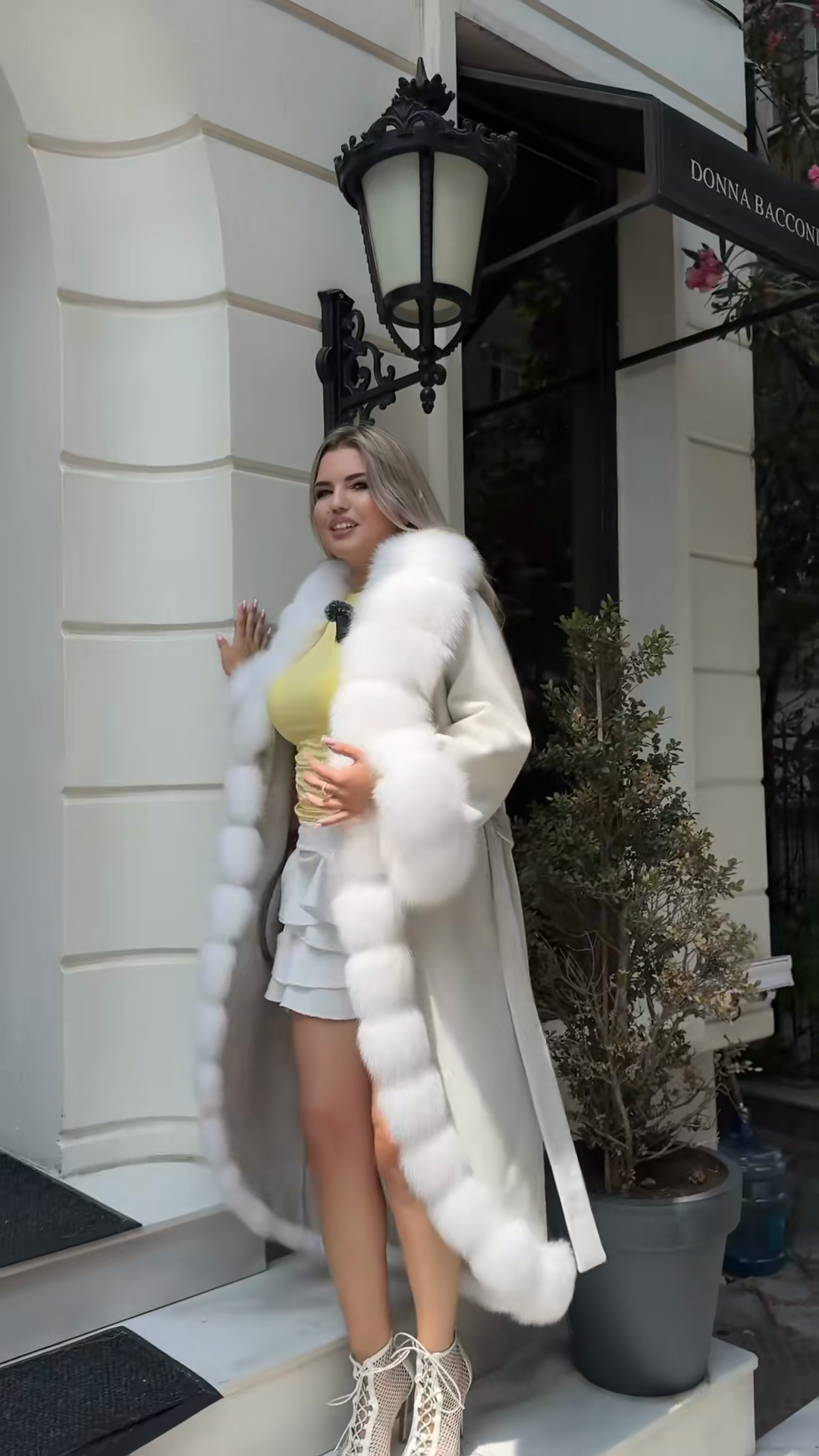 White Fur - Trimmed Coat